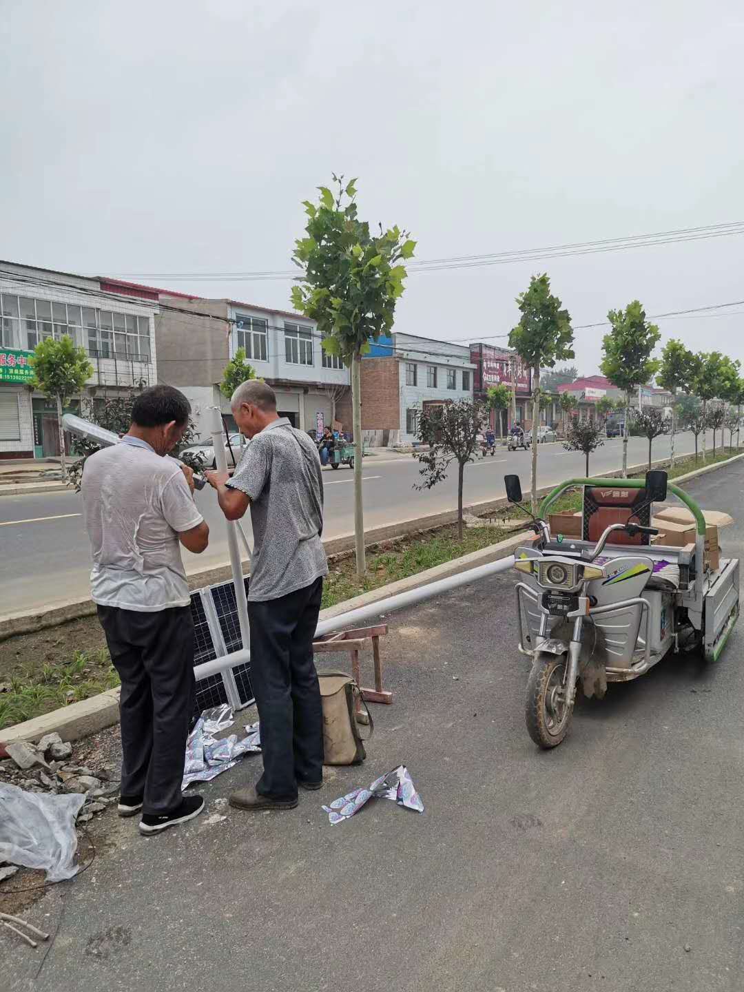 我們河北保定太陽能路燈廠家一大早來到唐山市一個鎮(zhèn)上,開始一天新的工作—8米太陽能路燈安裝。